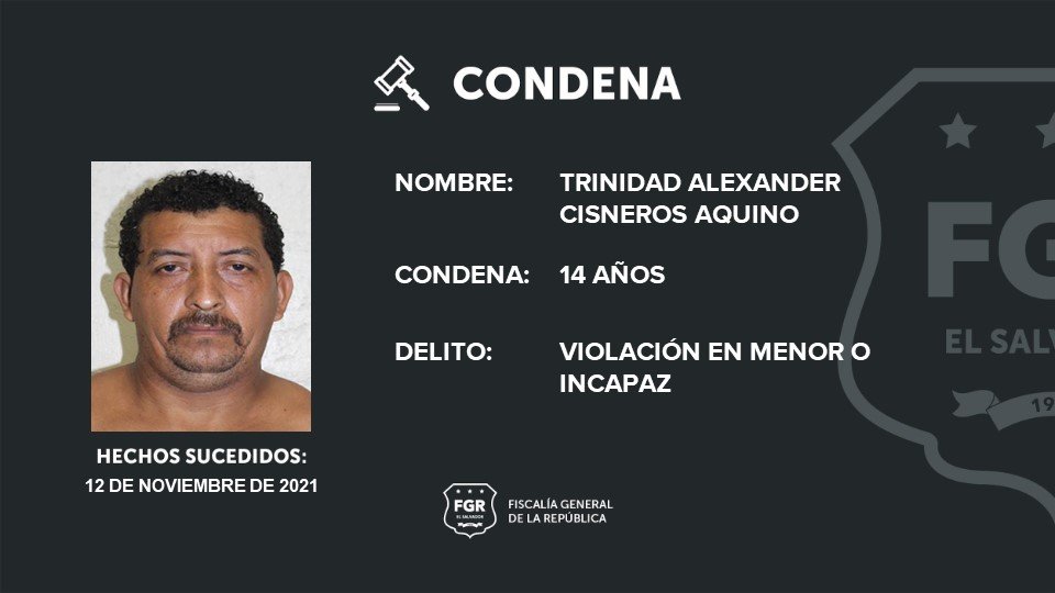 #VioladorCondenado | Trinidad Alexander Cisneros fue condenado a 14 años de cárcel por haber violado a una niña de 10 años en Jucuarán, Usulután.