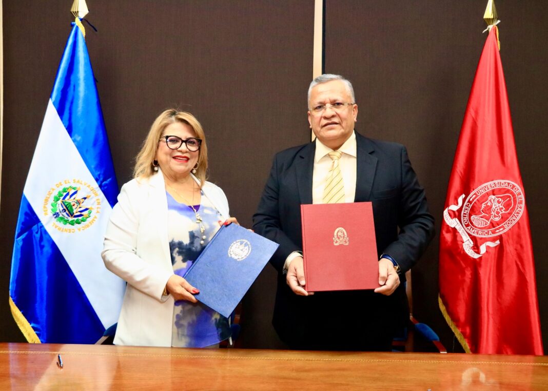 La carta de entendimiento fue firmada por el rector de la casa de estudios superiores Msc. Roger Arias y la magistrada de la Sala de lo Constitucional y coordinadora del Servicio Nacional de Facilitadores Judiciales, Elsy Dueñas Lovos.