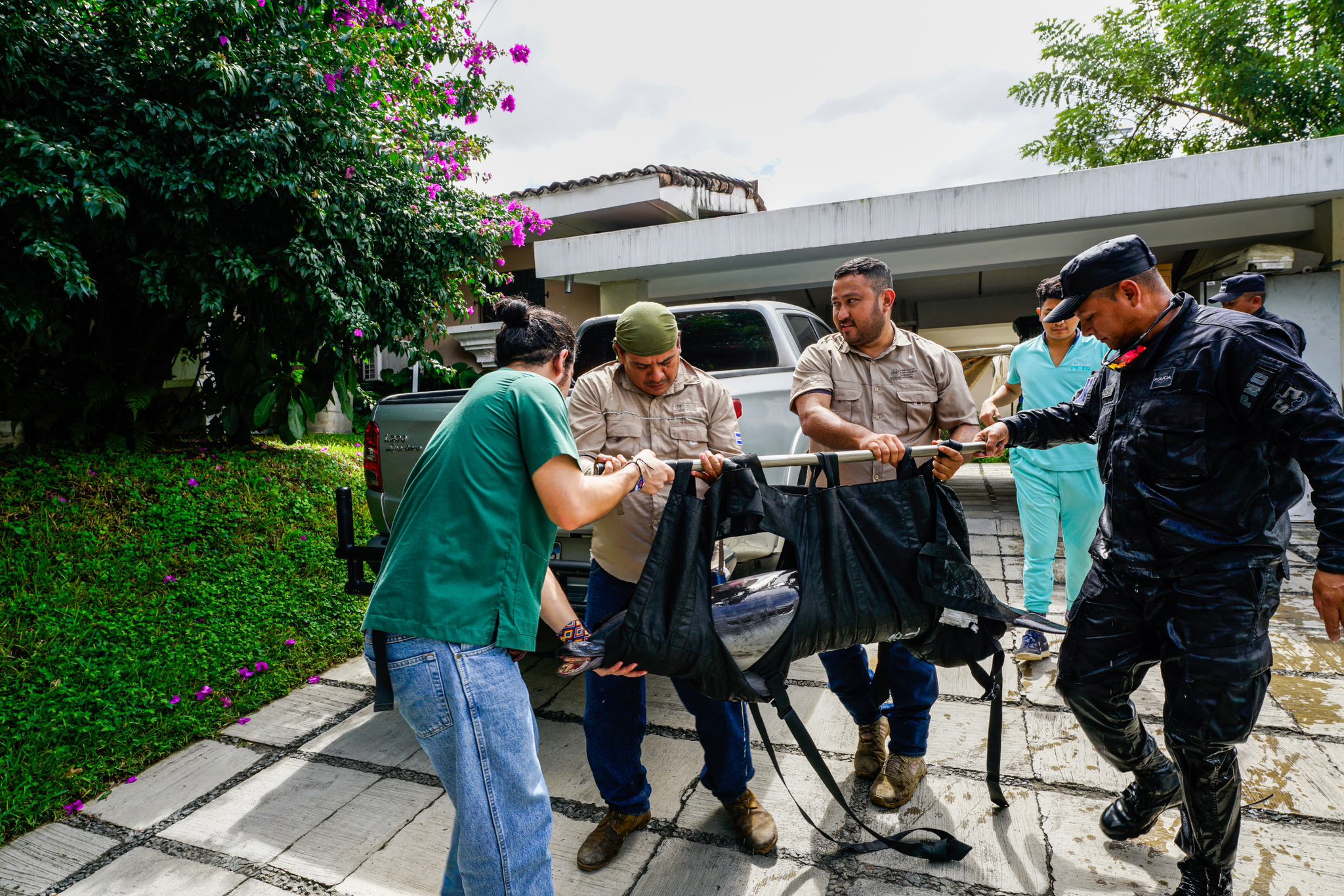 Las autoridades del Ministerio de Medio Ambiente y Recursos Naturales (MARN) informaron sobre el rescate de un ejemplar de delfín listado, que presenta una herida en la mandíbula, por lo que le realizarán exámenes y le darán cuidos necesarios para su recuperación.