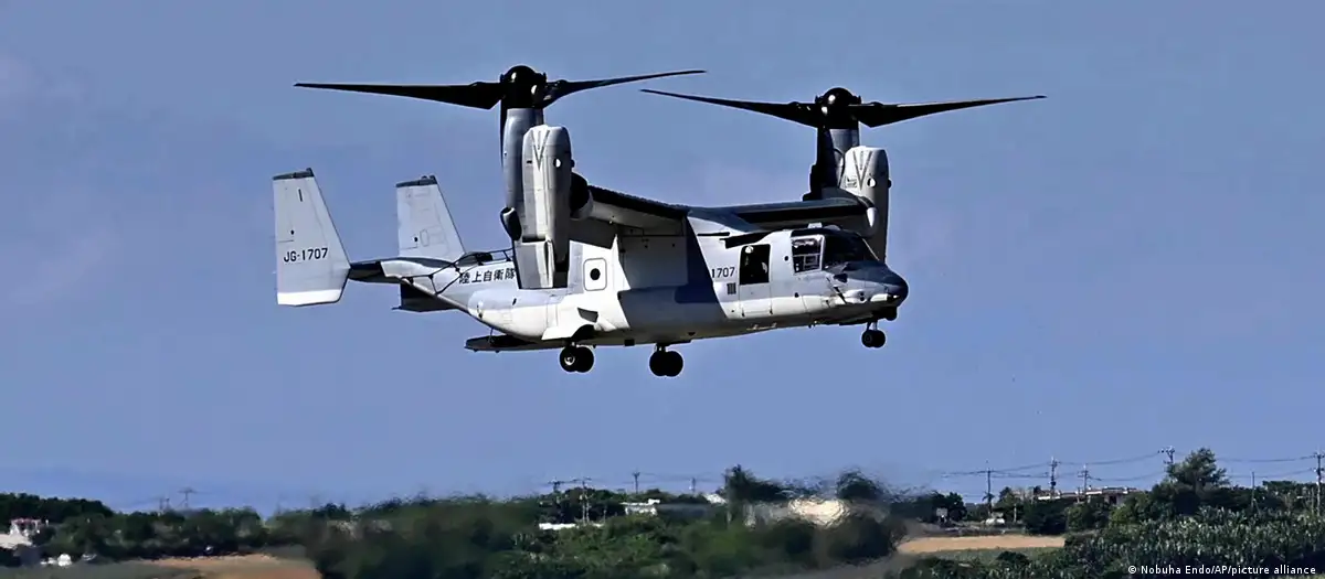 El despliegue del Osprey en Japón ha sido controvertido y los críticos dicen que el avión híbrido, capaz de despegar en vertical como un helicóptero, es propenso a sufrir accidentes. El Ejército estadounidense y Japón dicen que es seguro. En agosto, un Osprey estadounidense se estrelló frente a la costa del norte de Australia mientras transportaba tropas durante un ejercicio militar de rutina, matando a tres marines estadounidenses. El año pasado, otro aparato similar se estrelló en Noruega.