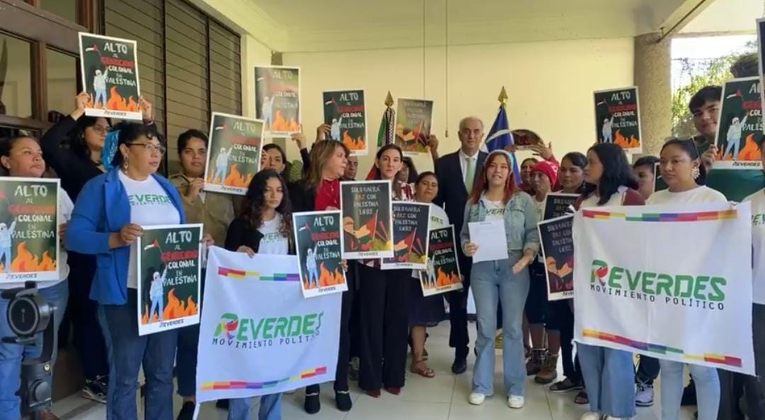 Los representantes del Movimiento Político Rebelión Verde El Salvador (REVERDES) se aglutinaron este miércoles, frente a las instalaciones de la Embajada de Palestina en El Salvador, con el objetivo de expresar su solidaridad con la nación árabe.