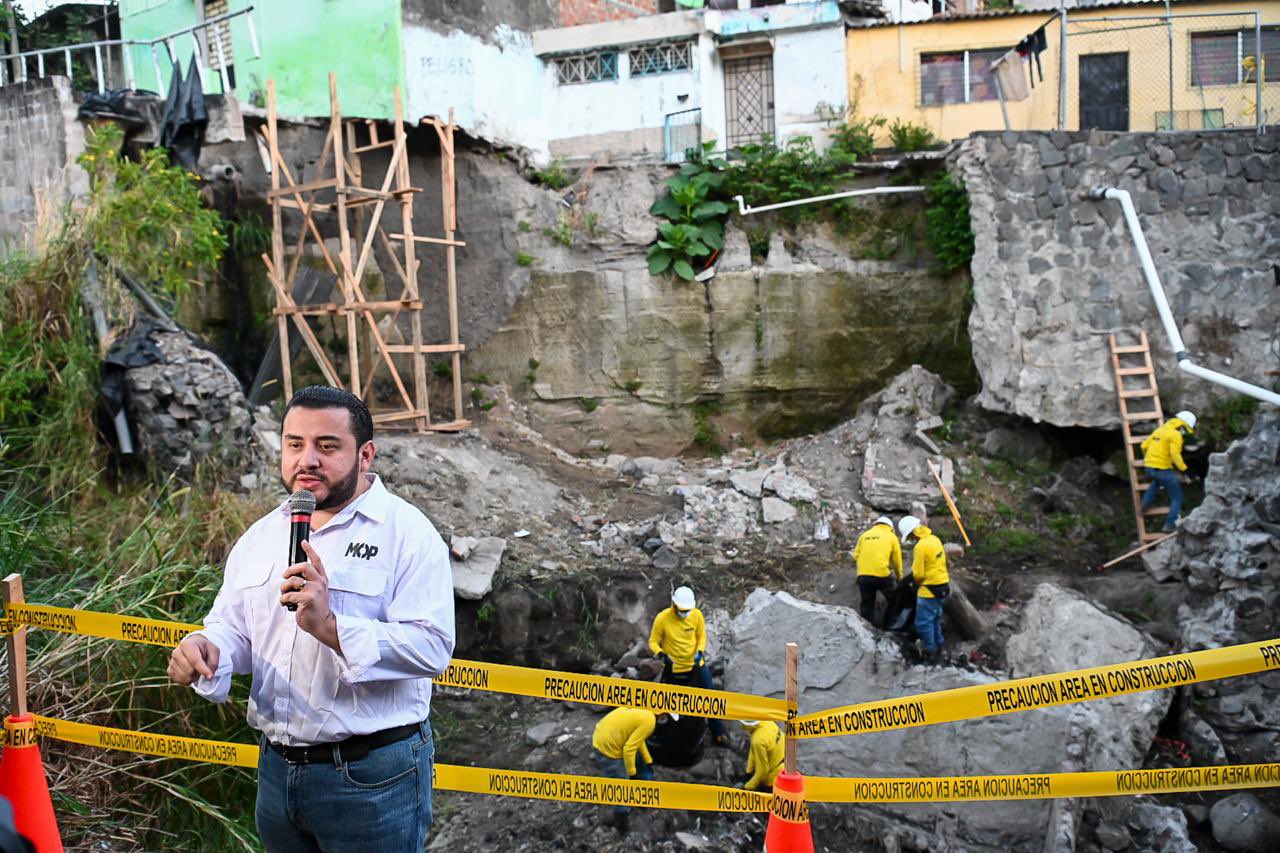 El Ministerio de Obras Públicas (MOP) inspeccionó los avances en una obra de mitigación realizada en la colonia El Bosque, en San Salvador, donde un muro colapsó por las lluvias generadas por la época invernal.