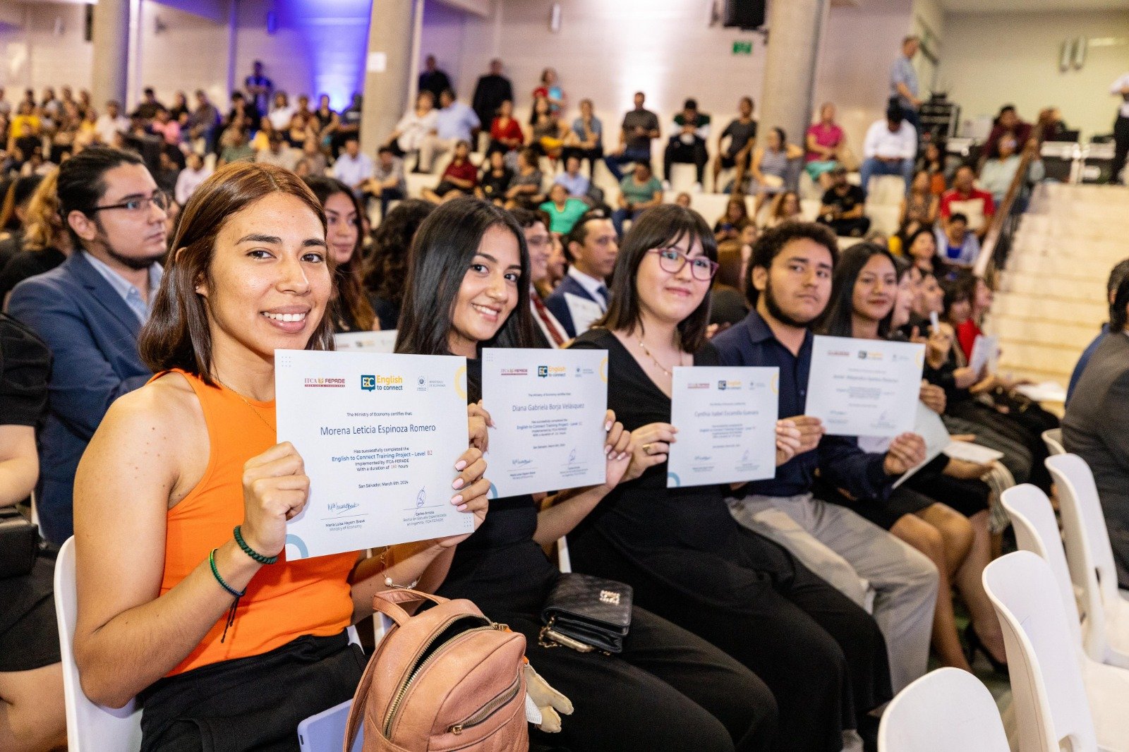 Este miércoles, el Ministerio de Economía, junto con socios estratégicos, realizó una feria de empleo dirigida a los participantes de la tercera edición del programa English to Connect (E2C), que recibieron su diploma este día.