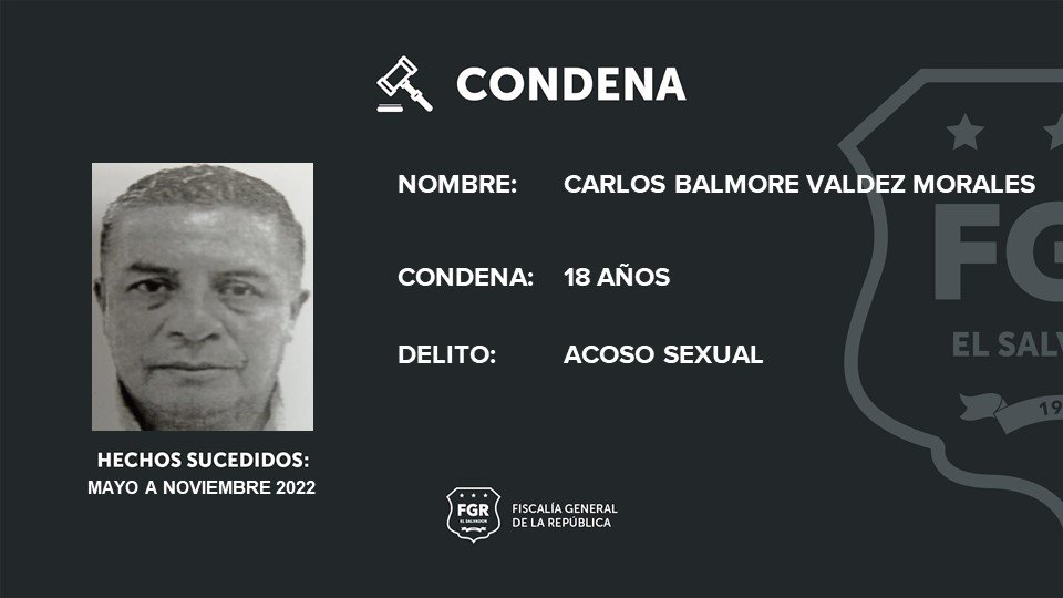 La Fiscalía General de la República (FGR) logró hacer justicia para 5 estudiantes de octavo, quienes eran acosados sexualmente por Carlos Balmore Valdez Morales; al imputado se le impuso una pena de 18 años de prisión.