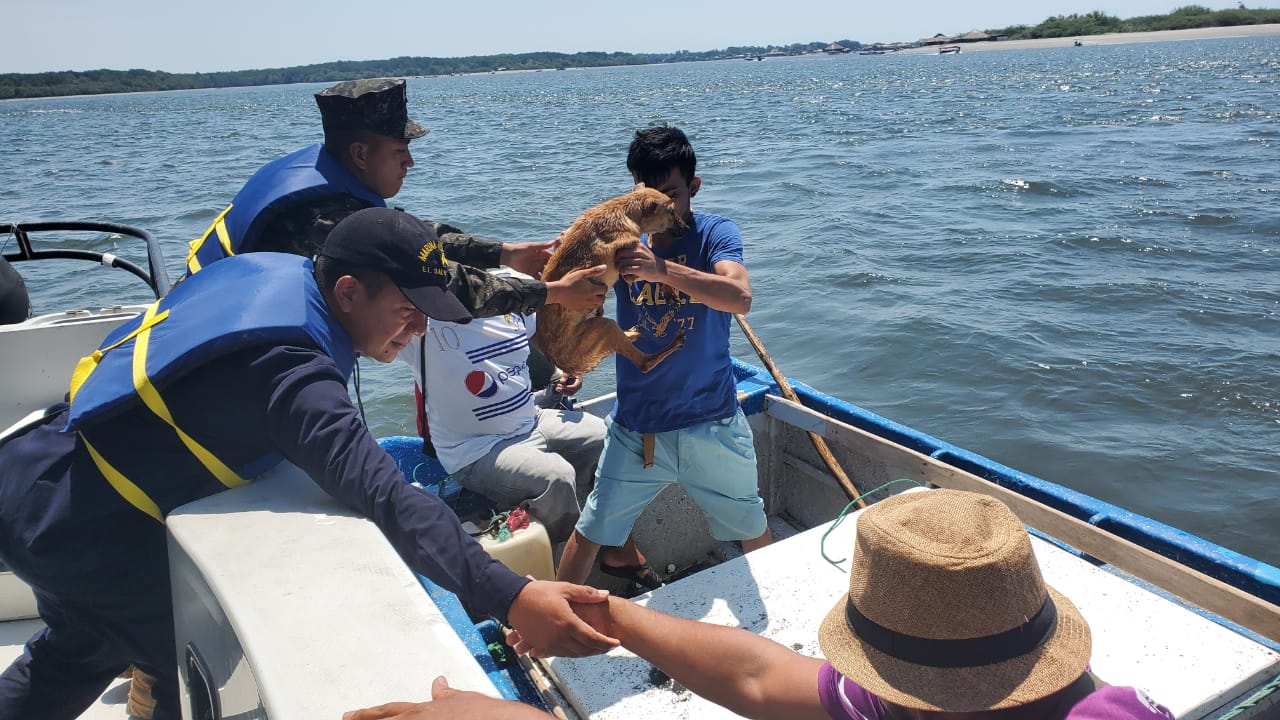 Una perrita fue localizada por miembros de la Fuerza de Tarea Naval Tridente de la Fuerza Armada cuando se encontraba nadando a la deriva en el Estero de Jaltepeque, jurisdicción del departamento de La Paz.