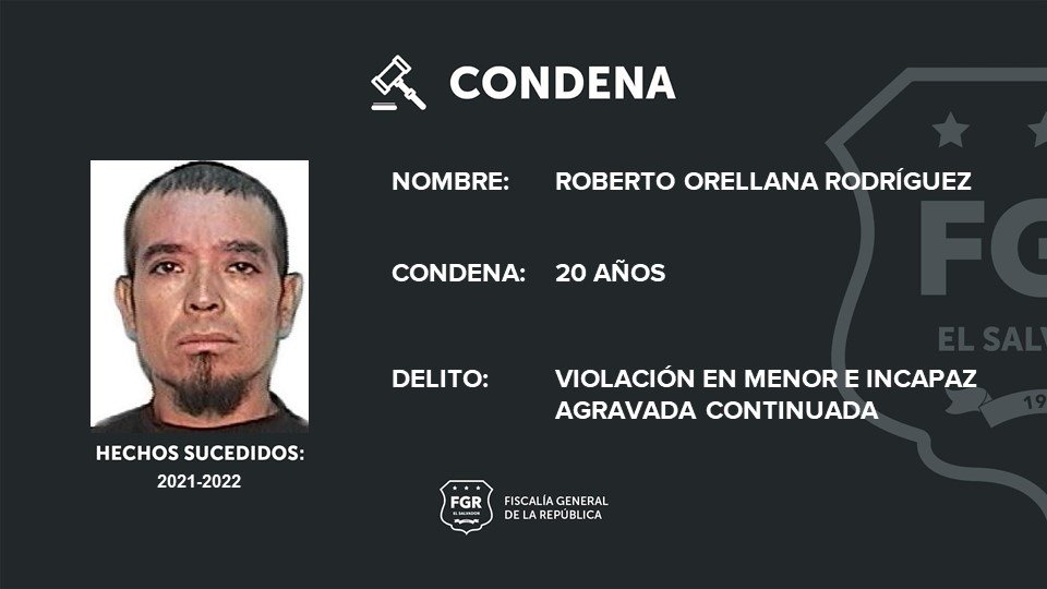 El Tribunal de Sentencia de Chalatenango valoró las pruebas presentadas por la Fiscalía y condenó a Roberto Orellana por el delito de violación en menor e incapaz agravada continuada.