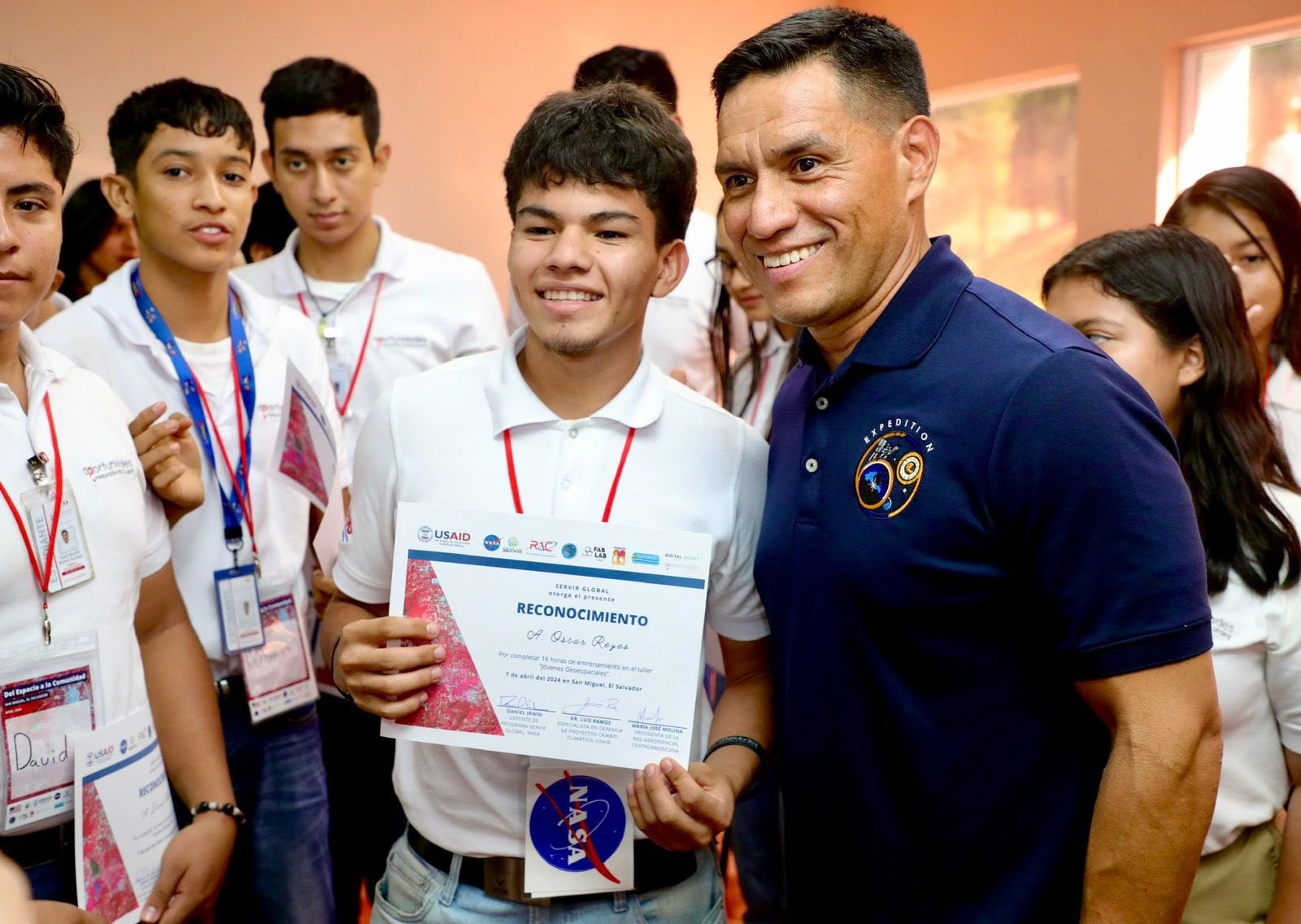 El astronauta de raíces salvadoreñas, Frank Rubio, compartió sus conocimientos este martes, con estudiantes y beneficiarios de programas auspiciados por Estados Unidos.