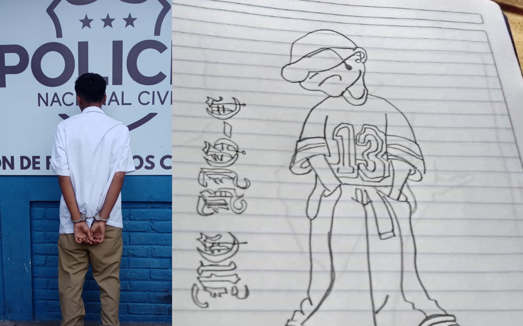 El joven, según el reporte policial, fue sorprendido en posesión de un cuaderno con dibujos con diferentes figuras relacionadas con la pandilla MS13.