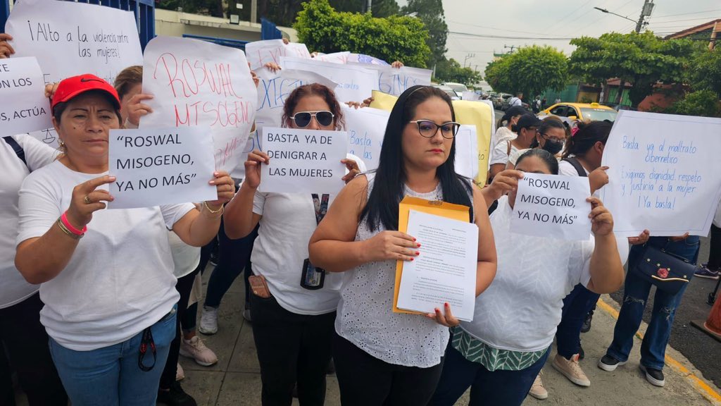 Este lunes, las representantes del Movimiento de Mujeres Organizadas de El Salvador se presentaron frente a las instalaciones de la Fiscalía General de la República (FGR), para interponer una denuncia penal en contra del Secretario General del Sindicato de Trabajadoras y Trabajadores del Órgano Judicial (SITTOJ), Roswal Solórzano.