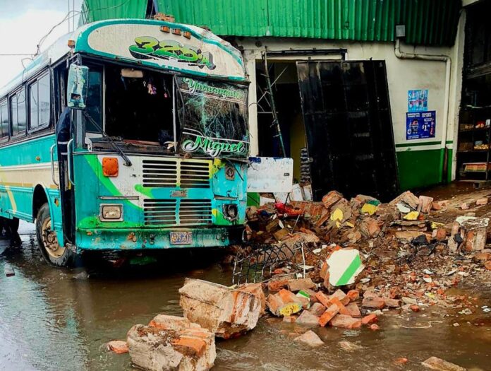 Autobús impactó contra negocio en San Miguel dejando un lesionado