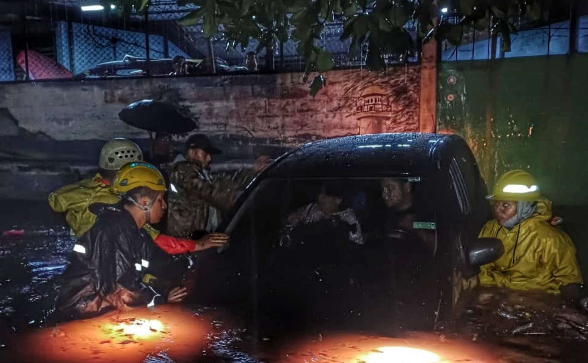 Tres personas atrapadas en el interior de un vehículo fueron rescatadas en horas de la noche de este martes, por elementos del Cuerpo de Bomberos, en el sector del triángulo de la colonia Santa Lucía, Ilopango, San Salvador.