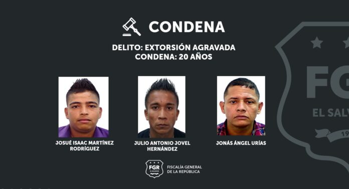 Los sentenciados son Julio Antonio Jovel Hernández, Josué Isaac Martínez Rodríguez y Jonás Ángel Urías.