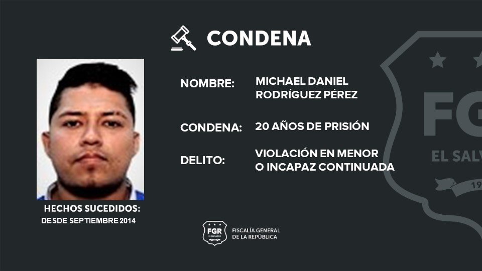 El Tribunal Quinto de Sentencia de San Salvador condenó a 20 años de prisión a un sujeto acusado de violar a una niña.