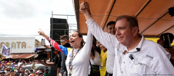 «Trabajemos sin descanso para lograr la recuperación de Venezuela. La recuperación en su más amplio sentido», dijo por su parte González, desconocido hasta su postulación in extremis tras la inhabilitación de Machado y el veto a otros nombres. «Contamos con todos y cada uno de ustedes», añadió.