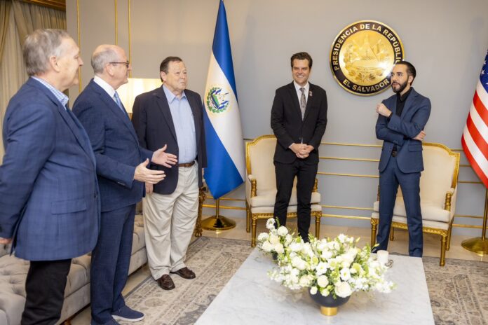 El presidente de la república, Nayib Bukele, sostuvo la noche del viernes una reunión de carácter oficial con una delegación de Miembros de la Cámara de Representantes de los Estados Unidos del partido Republicano, con el objetivo de abordar diversos temas bilaterales entre ambas naciones, indicaron fuentes gubernamentales.