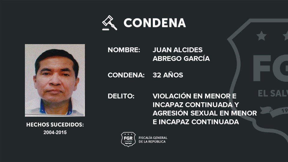 Según la Fiscalía General de la República (FGR), Juan Alcides Abrego García era un líder religioso que se valió de su cargo para abusar sexualmente de un menor.