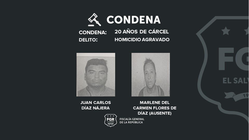 Juan Carlos Díaz y Marlene del Carmen Flores fueron condenados a 20 años de cárcel por el delito de homicidio agravado.