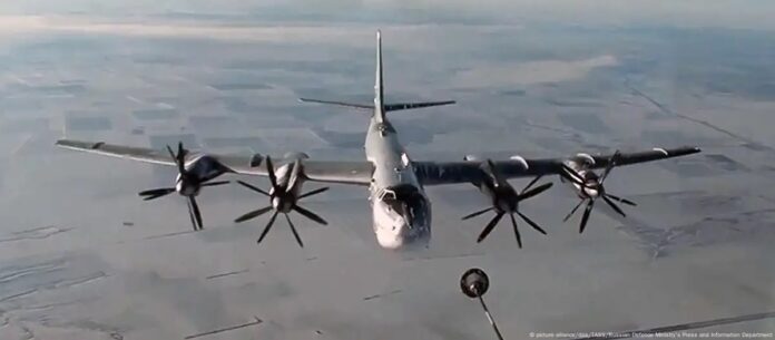 «Un grupo de aviación compuesto por bombarderos estratégicos TU-95MS de las fuerzas aeroespaciales rusas y bombarderos estratégicos Xian H-6K de la fuerza aérea china efectuaron un patrullaje conjunto sobre los mares de Chukchi y Bering y el Pacífico norte», precisó el ministerio.