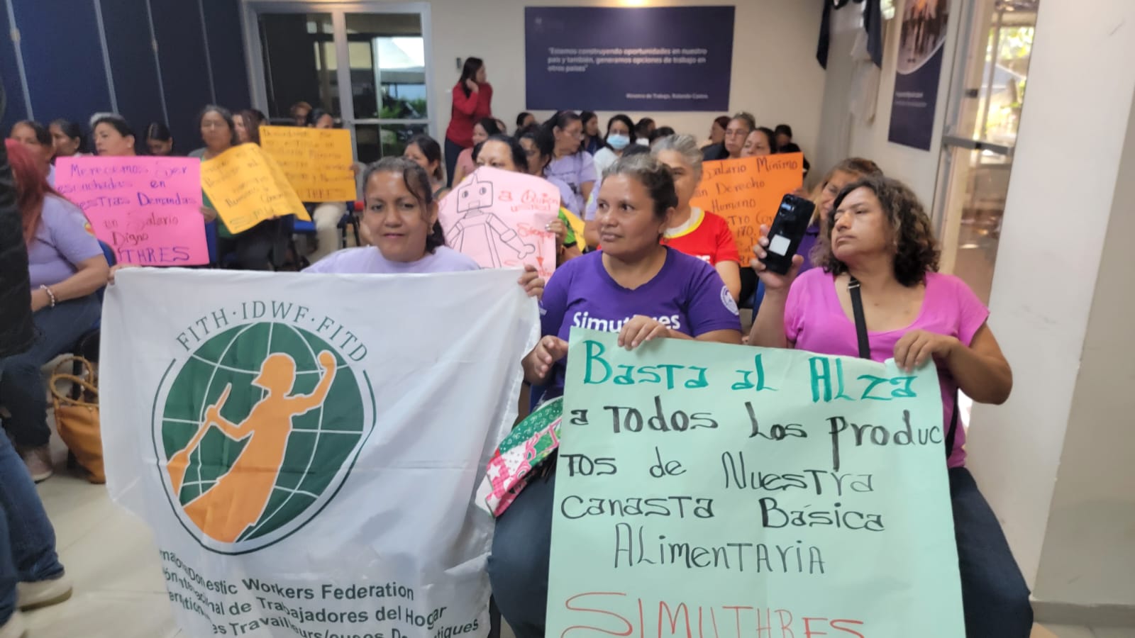 Este jueves, las representantes del Sindicato de Mujeres Trabajadoras del Hogar (Simuthres) se presentaron en el Ministerio de Trabajo para entregar una propuesta sobre la asignación de un salario mínimo para las trabajadoras domésticas.
