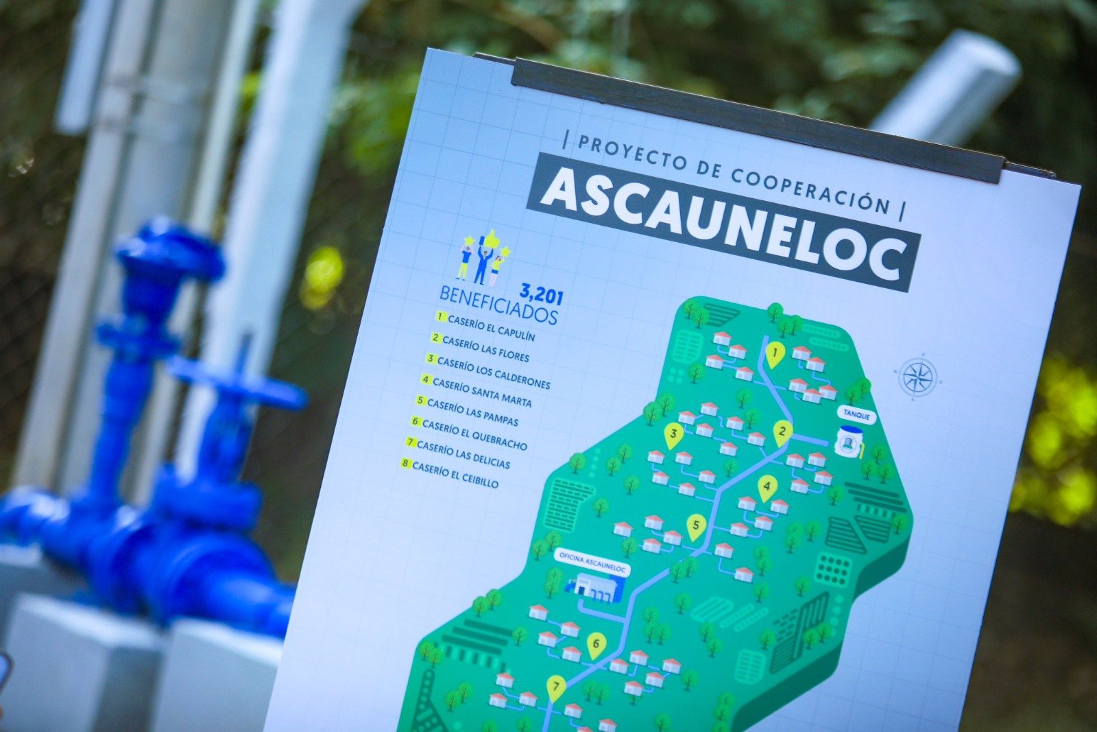 El presidente de la Administración Nacional de Acueductos y Alcantarillados (ANDA), Rubén Alemán, y el ministro consejero de la Embajada de España en El Salvador, Alfonso Pérez, inauguraron el proyecto de mejora del sistema de agua de la Asociación Comunal de Agua La Única Esperanza de los ocho caseríos (Ascauneloc), en el distrito de Jujutla, municipio de Ahuachapán Sur.