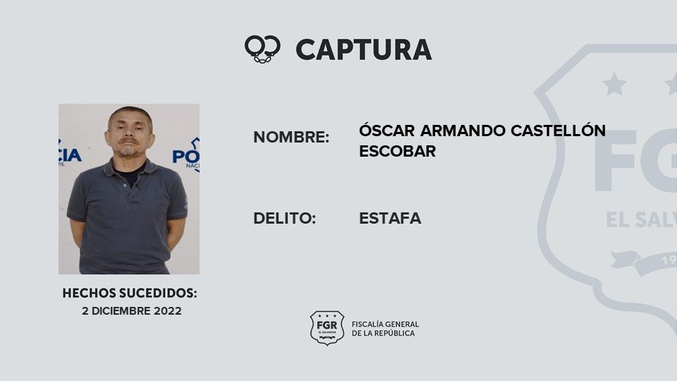 La Fiscalía General de la República (FGR) ha ordenado la captura de Óscar Armando Castellón Escobar, quien está acusado de estafa.