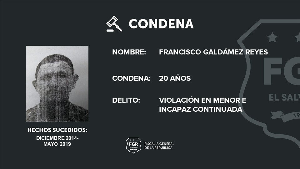 Francisco Galdámez fue sentenciado a 20 años de prisión por abusar sexualmente de una menor de edad en varias ocasiones.