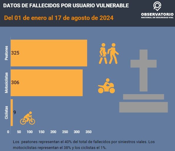 Entre el 1 de enero y el 17 de agosto de este año, se han reportado al menos 640 fallecimientos de usuarios vulnerables en las vías.