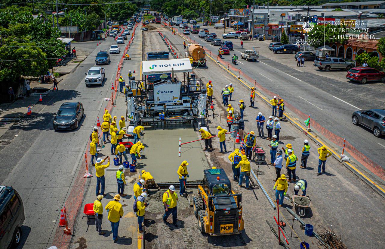 El Ministerio de Obras Públicas (MOP) realizó este lunes una prueba de pavimentación en la carretera Panamericana, en el tramo ampliado que va desde El Poliedro hasta el desvío de San Juan Opico, como parte del proyecto de ampliación de esta vía que incluye también el tramo conocido como Los Chorros así como la construcción del viaducto Francisco Morazán en esa misma zona.