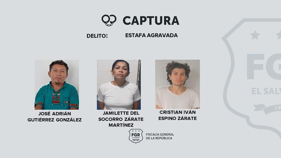 Este miércoles, la Fiscalía General de la República (FGR) presentó requerimiento en contra de los nicaragüenses Cristian Espino Zárate, Jamilette del Socorro Zárate y José Adrian Gutiérrez, acusados de estafar a una víctima con $26,900 dólares.
