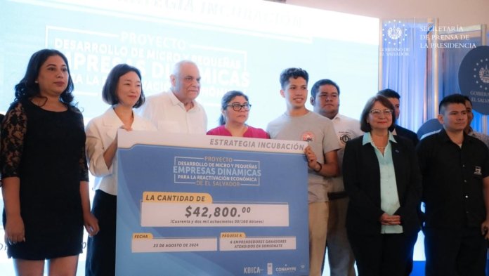 Este viernes, el Gobierno entregó fondos no reembolsables a 48 iniciativas económicas, como parte del proyecto “Desarrollo de micros y pequeñas empresas dinámicas para la reactivación económica de El Salvador”, que ejecuta la Comisión Nacional de la Micro y Pequeña Empresa (CONAMYPE).