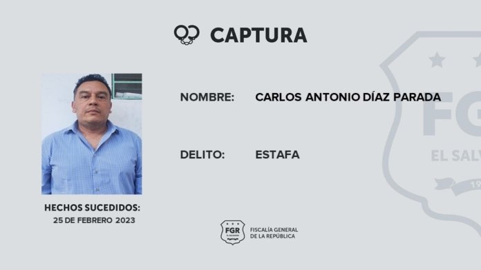La Fiscalía General de la República ordenó la captura de Carlos Díaz acusado de estafar a una víctima en Antiguo Cuscatlán.