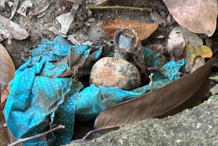 Según la corporación policial una de las granadas fue encontrada envuelta en tela y la otra semienterrada.