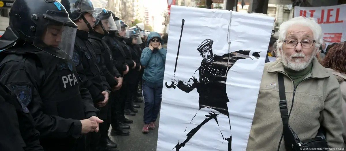 El 28 de agosto, unas 2.500 personas jubiladas marcharon desde el Congreso hacia la Casa Rosada para exigir que el presidente no vetara la ley. En dicha manifestación, la Policía reprimió a personas adulto-mayores, en virtud del protocolo anti-piquetes dispuesto por el Gobierno, con gas pimienta y porras. Ese mismo día, Milei divulgó en sus redes sociales un adelanto de su propia serie documental en la que se escucha una de sus frases: «No soy famoso como economista, pero sí como rockstar».