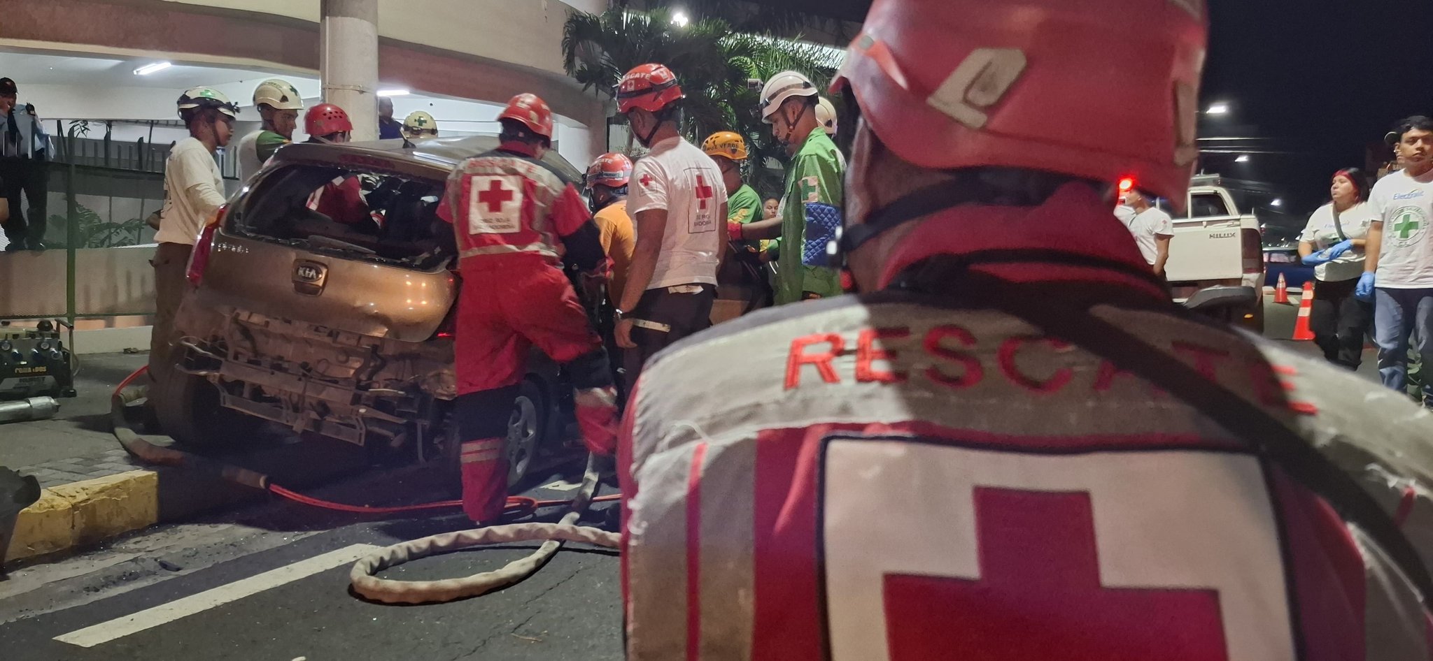 La Cruz Roja Salvadoreña informó que las dos personas quedaron atrapadas entre los hierros del automóvil.