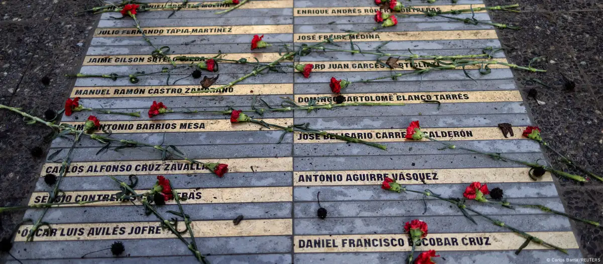 Foto de archivo de flores sobre los nombres de algunas de las víctimas de la dictadura de Chile. Imagen de referencia.