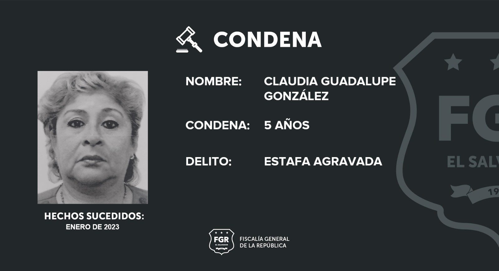 La Fiscalía General de la República (FGR) informó que Claudia Guadalupe González fue sentenciada a cinco años de cárcel por el delito de estafa, además de ser obligada a devolver $51,000 a su víctima.