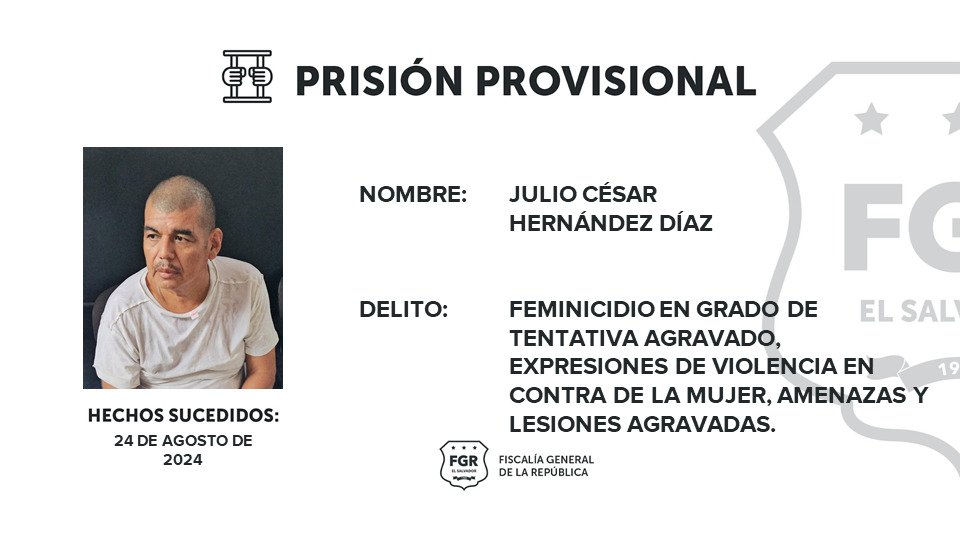Cabe señalar que, a finales de agosto, la Policía Nacional Civil (PNC) reportó la captura de Hernández Díaz, tras ser acusado de lesionar a una menor de 15 años en la lotificación Chancala, cantón San Roque, Mejicanos.