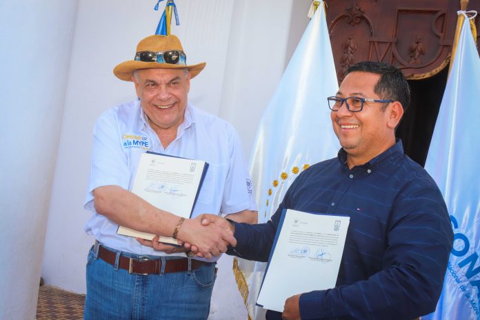 Este martes, la Comisión Nacional de la Micro y Pequeña Empresa (CONAMYPE) y la Alcaldía de Cuscatlán Norte firmaron un convenio de cooperación con el objetivo de respaldar a las micro y pequeñas empresas de los cinco distritos del municipio. El acuerdo fue suscrito por el presidente de CONAMYPE, Paul Steiner, y el alcalde de dicho municipio, Carlos Sánchez.