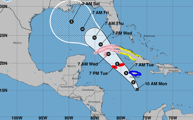 Actualmente, se encuentra al sur de Jamaica, con vientos sostenidos de 55 km/h y avanza hacia el noroeste en dirección al Golfo de México, con posibilidades de intensificarse a tormenta tropical o huracán.