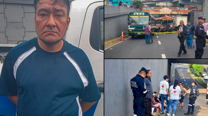 Según la PNC, Juan Carlos Pérez Preza, de 45 años de edad, quien conducía un autobús de la ruta 34 sin licencia y a excesiva velocidad, impactó contra un autobús de la ruta 205, resultando en al menos ocho personas lesionadas, incluyendo tres menores de edad.