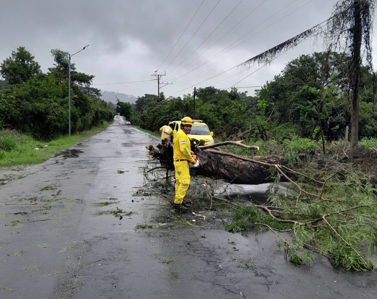 Así mismo, el Cuerpo de Bomberos, Fuerza Armada y Policía Nacional Civil apoyaron en la remoción de árboles caídos en Puerto Parada, Usulután; Sensuntepeque, Cabañas; San Rafael Obrajuelo, La Paz; y Concepción Batres, Usulután.