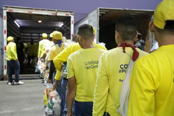 Los paquetes alimenticios incluyen productos básicos como frijoles, arroz, harina de maíz, leche, pastas, aceite, sal, azúcar y artículos de higiene personal.