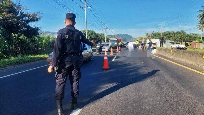 Según el informe preliminar de la Policía Nacional Civil (PNC), la víctima, una motociclista, perdió el control de su vehículo y posteriormente fue embestida por un camión.