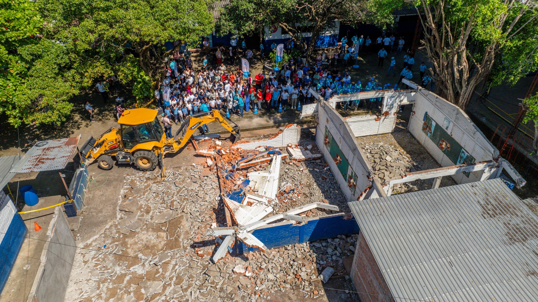 Este fin de semana, la Dirección de Obras Municipales (DOM) dio inicio a la reconstrucción del centro escolar Cristóbal Colón, ubicado en el distrito de Nahulingo, Sonsonate Centro.