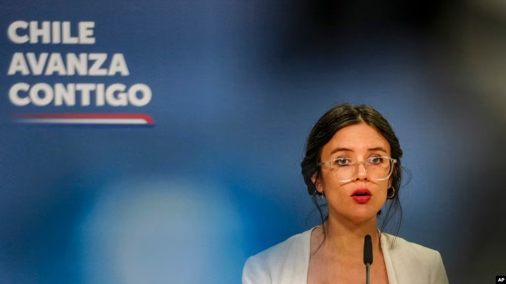 Camila Vallejo, portavoz del gobierno, habla durante una conferencia de prensa sobre la denuncia de acoso contra el presidente chileno Gabriel Boric, en La Moneda, palacio presidencial de Santiago, el martes 26 de noviembre de 2024. Foto: Cortesía.