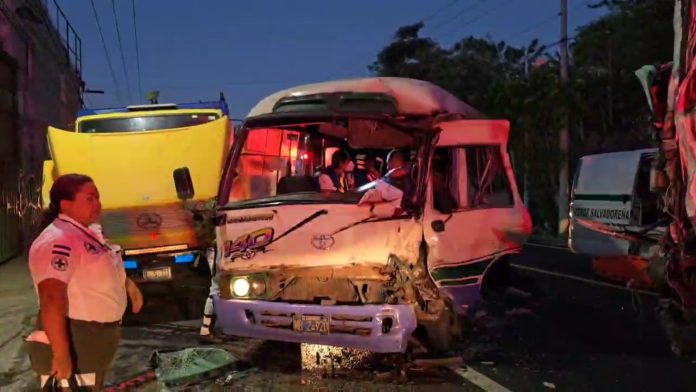 Según el reporte de socorristas que atendieron la emergencia, un microbús de la ruta 140 colisionó con la parte frontal de un camión, ocasionando heridas de consideración y dejando al motorista de la unidad del transporte público atrapado entre los hierros.