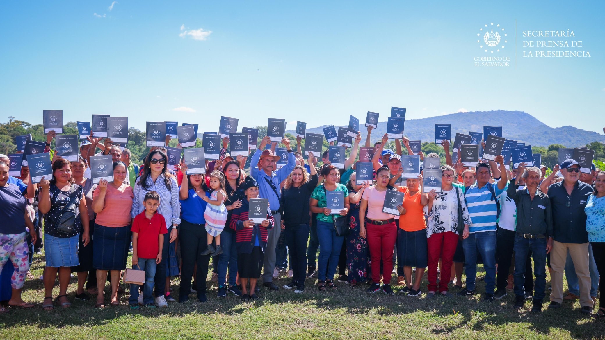 Este martes, la ministra de Vivienda, Michelle Sol, entregó 106 escrituras de propiedad a habitantes de las comunidades Bendición de Dios y Tierra Fértil, en el distrito de Coatepeque, municipio de Santa Ana Este.