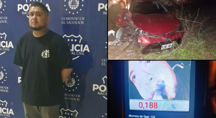 La Policía Nacional Civil (PNC) identificó al detenido como José Turcios Villatoro, de 27 años, quien chocó contra un vehículo y un poste en la colonia Ciudad Pacífica, en San Miguel.