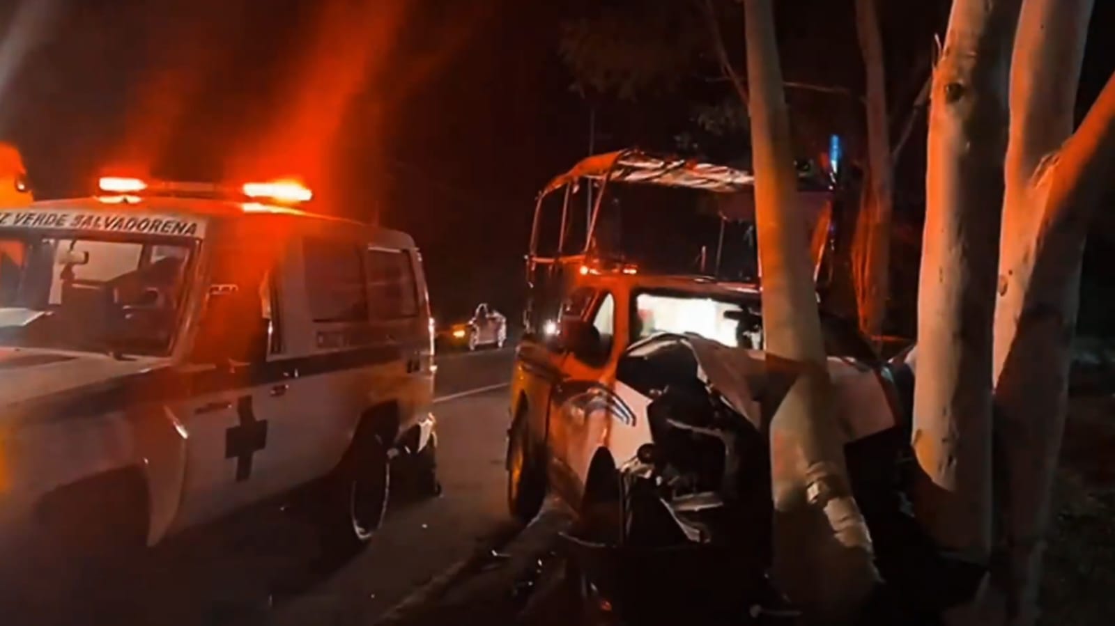 Cuatro personas resultaron lesionadas en un accidente de tránsito ocurrido sobre el kilómetro 36 de la Autopista a Comalapa, luego de que el pick-up en el que viajaban impactara contra un poste.