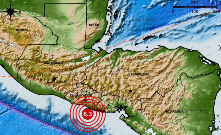 Un sismo de magnitud 6.3 en la escala de Richter sacudió este domingo a El Salvador, informó el Ministerio de Medio Ambiente y Recursos Naturales (MARN).
